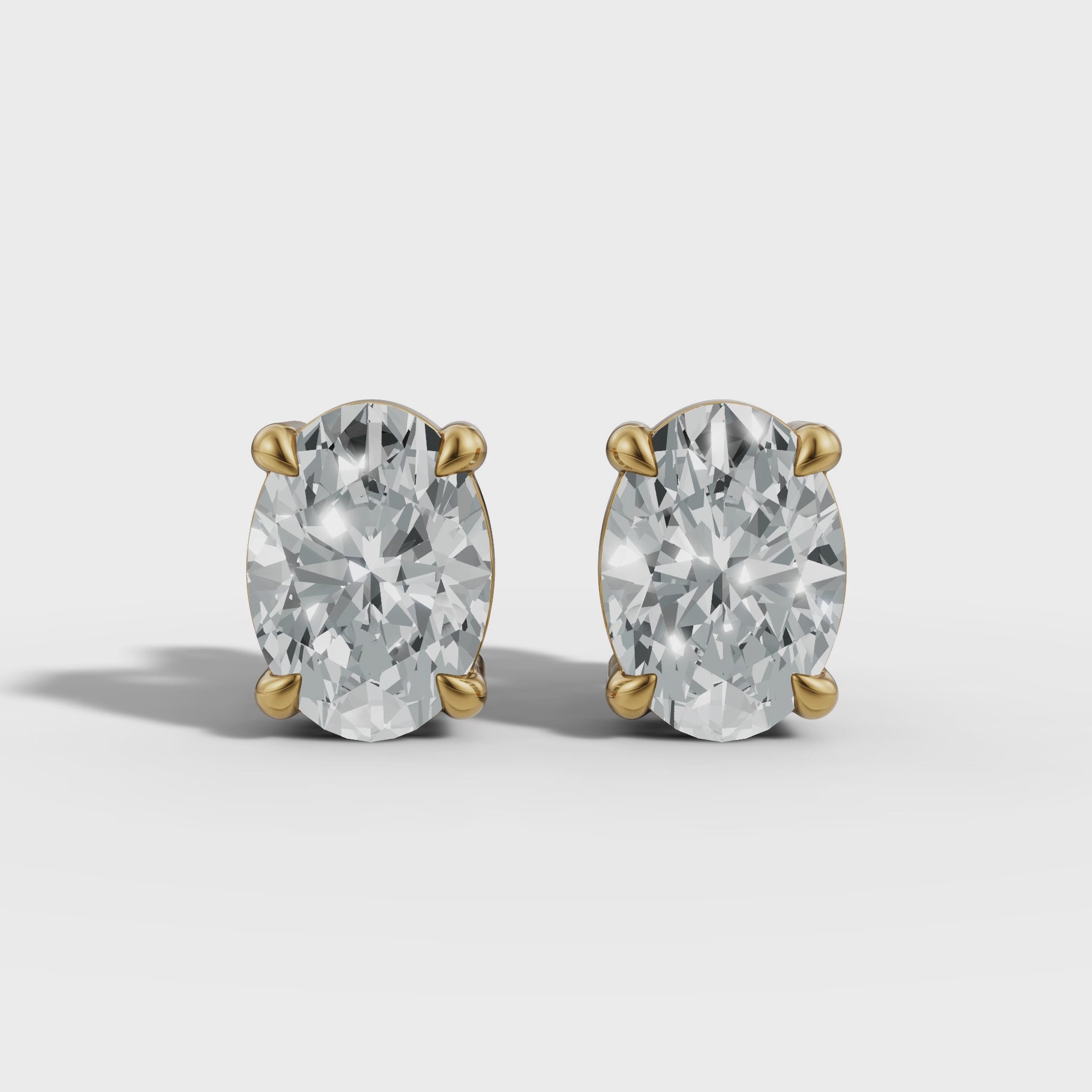 1.00 CTW Oval Lab-Grown Diamond Basket-Set Stud Earrings W/ Claw Prongs– E–F VS1/VS2, 14K / 18K Gold Options