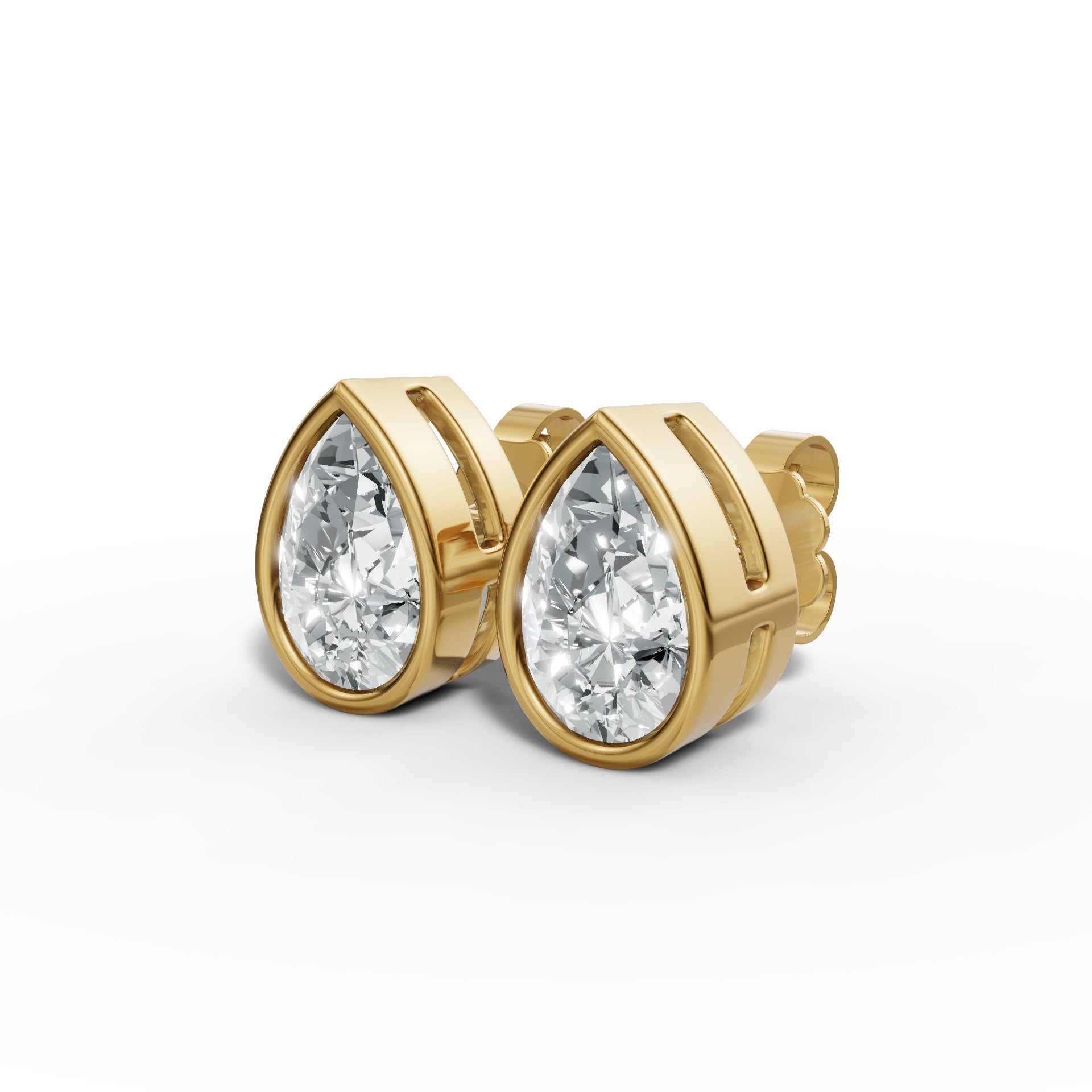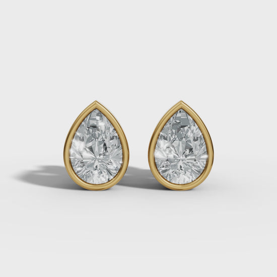1.00 CTW Pear Lab-Grown Diamond Bezel-Set Stud Earrings – E–F VS1/VS2, 14K / 18K Gold Options
