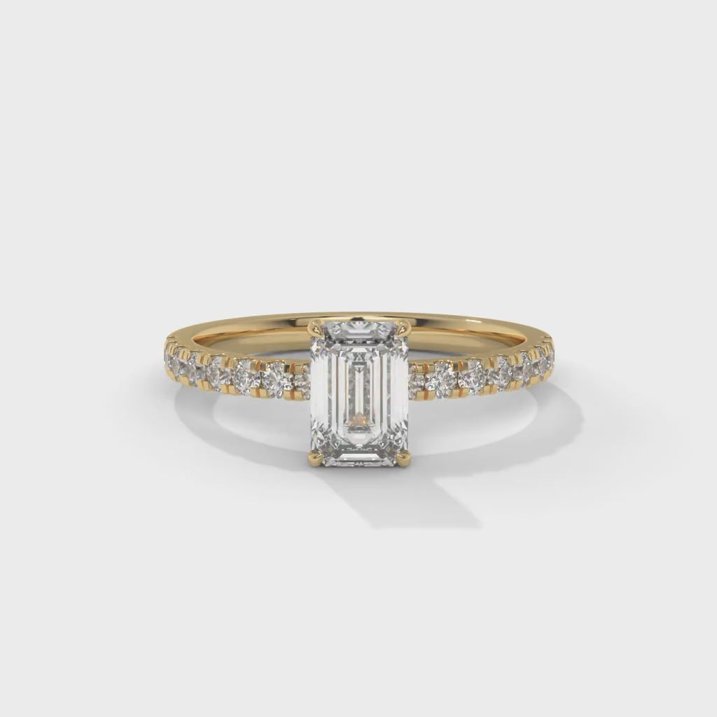 1.30 CTW Emerald Lab-Grown Diamond Engagement Ring – 1 CT E VVS2 Center + 0.30 CT Round Accents, 14K Gold