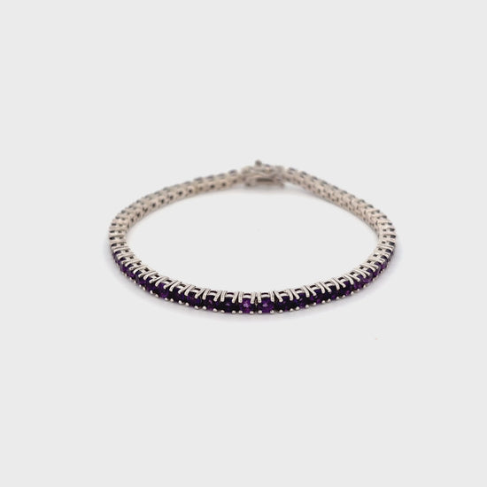 Amethyst Tennis Bracelet ā 3 mm Stones ā Sterling Silver with Rhodium Plating
