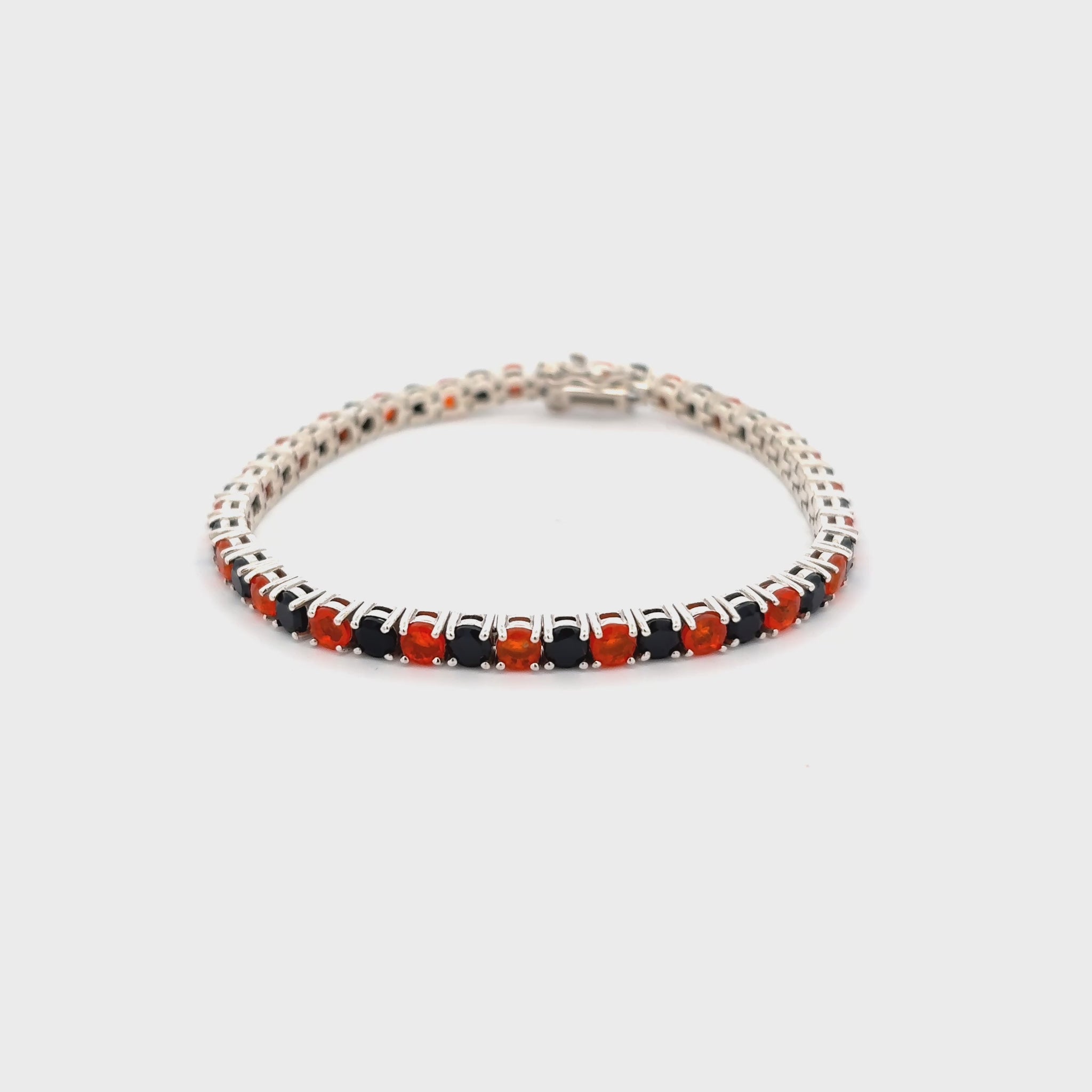 Citrine & Black Spinel Gemstone Bracelet – 3.8 mm Stones – Sterling Silver with Rhodium Plating