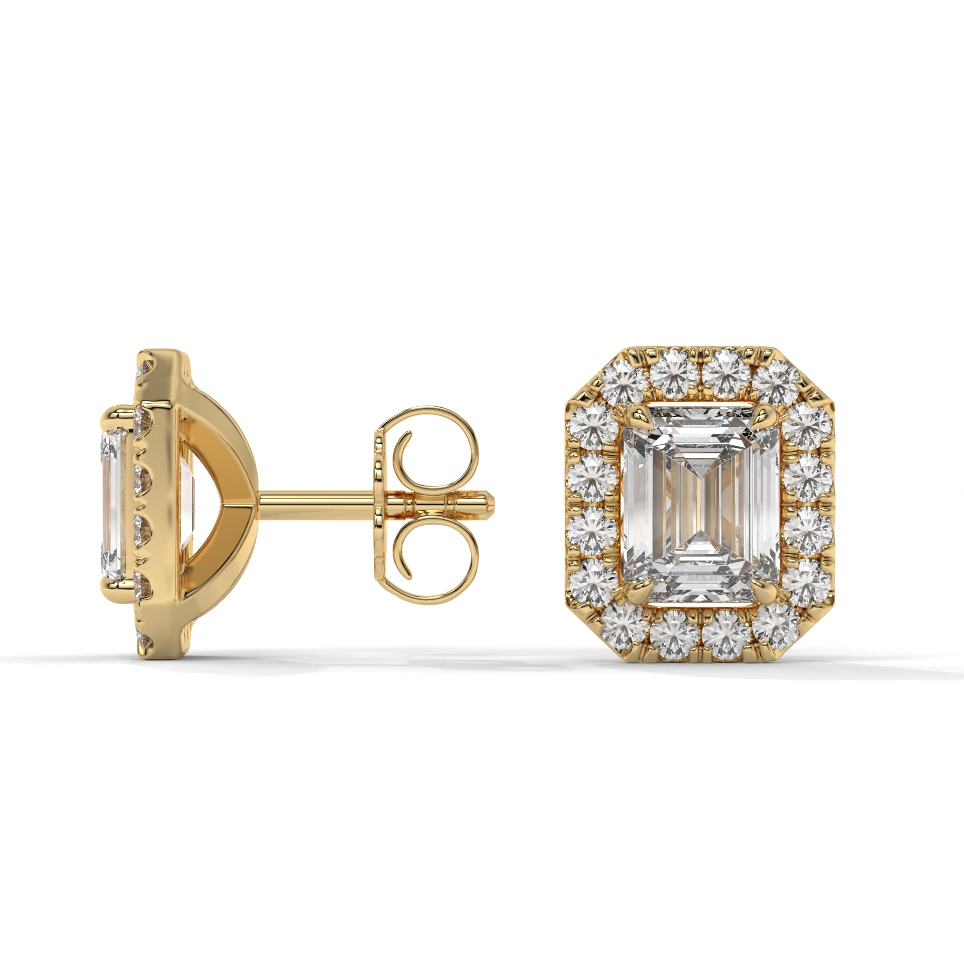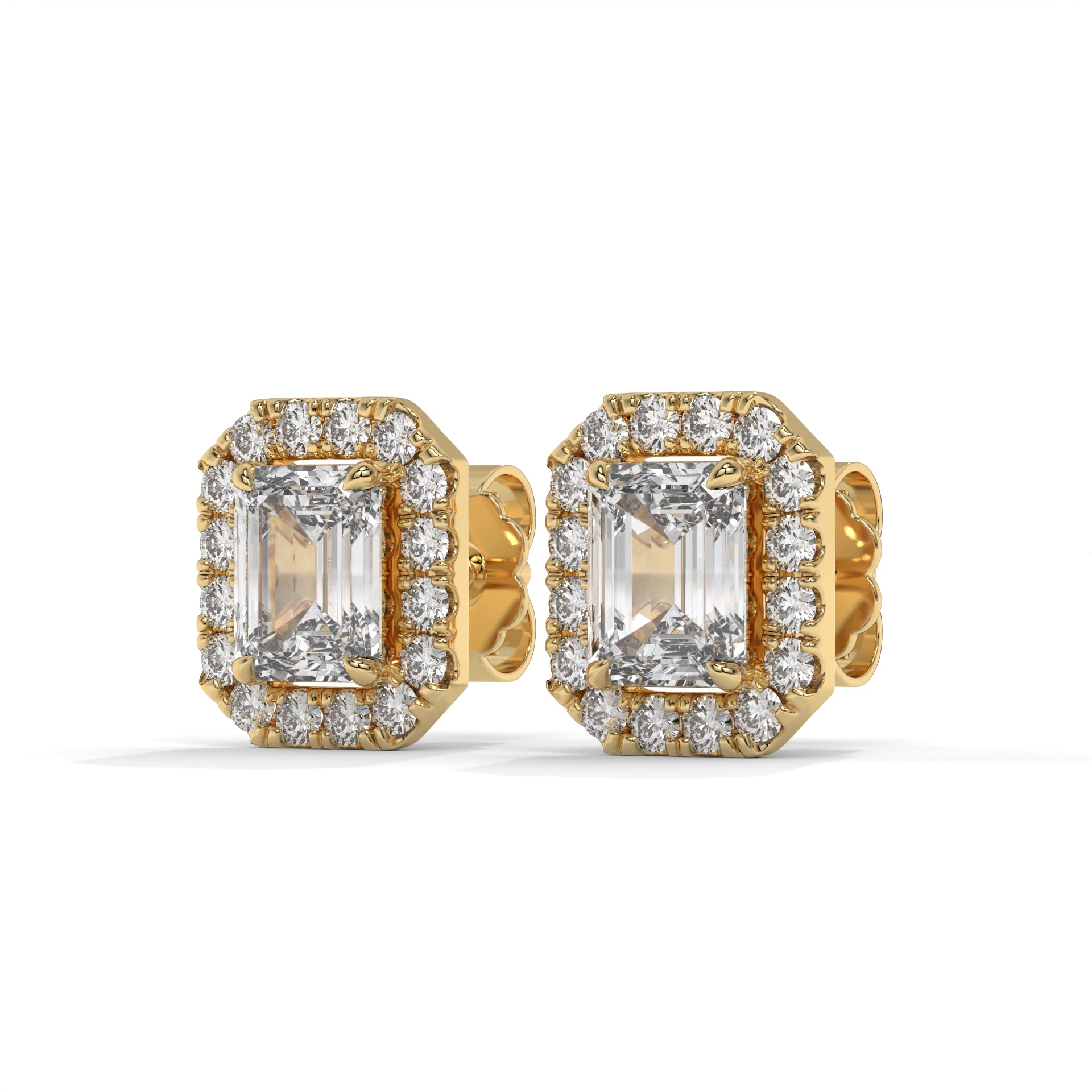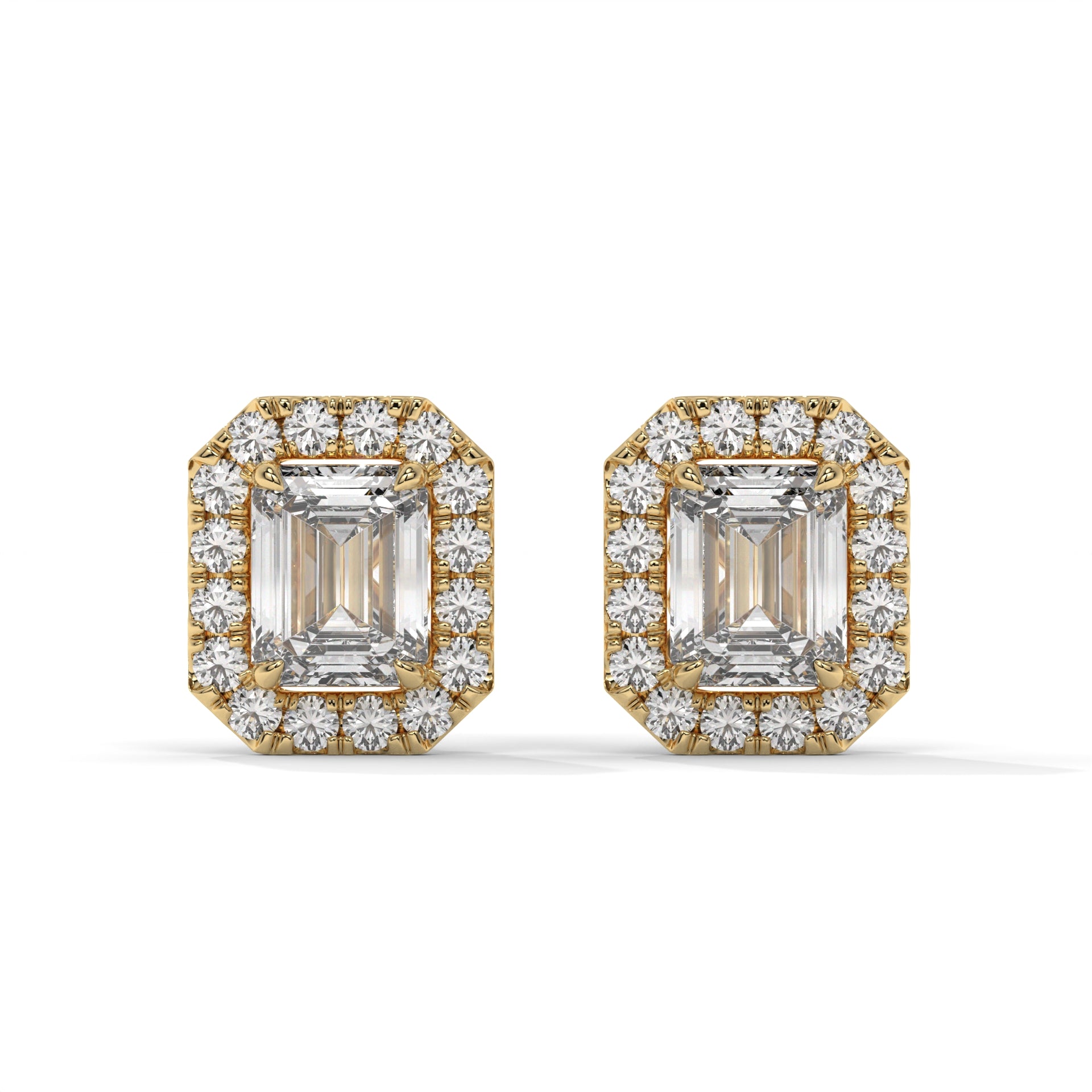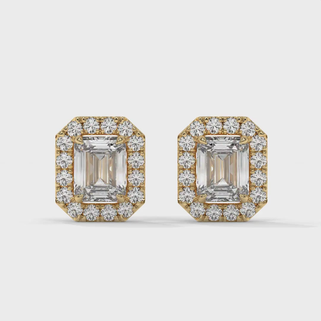 Emerald Halo Lab-Grown Diamond Pave Stud Earrings – E–F VS1/VS2, 14K / 18K Gold Options